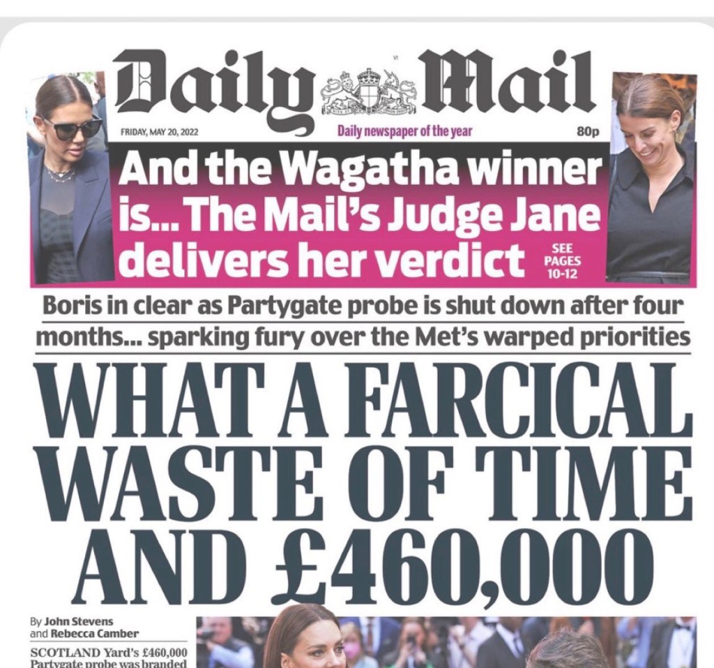 Last Friday’s headlines screamed ‘WHAT A FARCICAL WASTE OF TIME AND £460,000’ referring to the ongoing PartyGate scandal and the subsequent ‘investigation’ by the Metropolitan Police. The whole affair has without doubt been an incredible waste of time and national resource, when there are so many other things that deserve our attention.