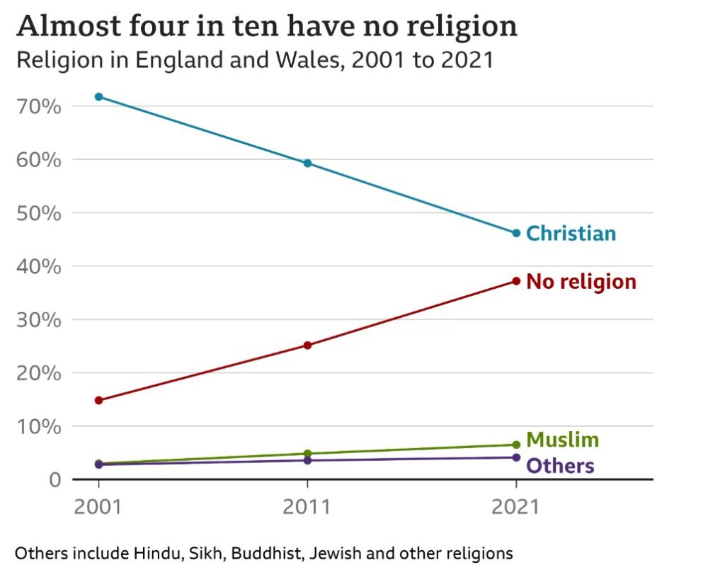 Interestingly, 37.2% of the population now claims to have no religion. By the next census this group is likely to overtake the Christian group and we will become a truly secular country. Yet we need to take this with some scepticism as nearly everyone of us has some faith and subscribes to some religion.
