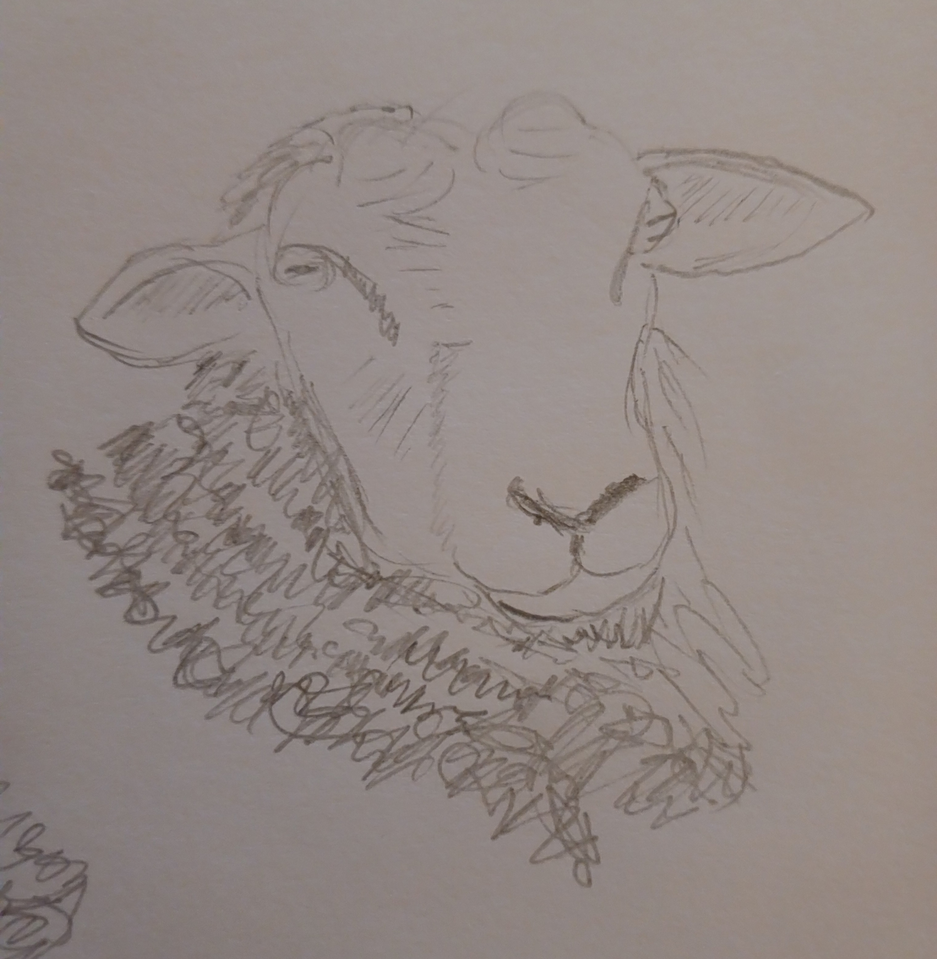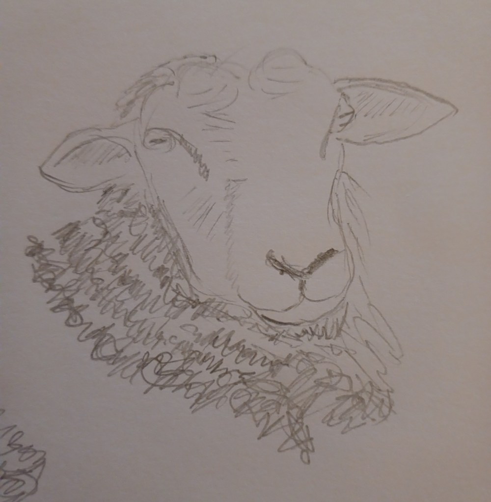 Since then I have been practicing on a fairly regular basis, looking for suitable illustrations on the Internet and copying them in my work book. Some have been awful while others have been, though I say it myself, pretty good. For some reason I have focussed on animal heads and have drawn a very acceptable horse, zebra and elephant. Yet it is my sheep that has got me excited, not that it is particularly good though it is clearly identifiable as ovine. This is the first time that I have drawn something successfully from a photograph rather than a drawing. This is a major leap forward for me.